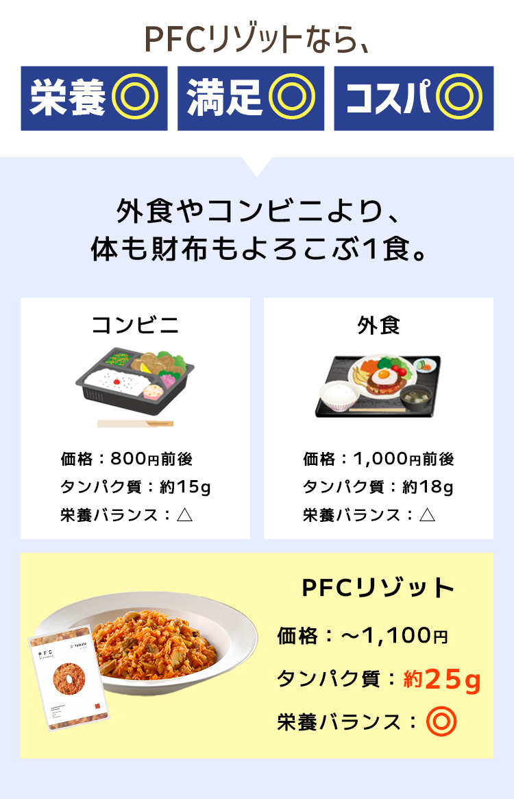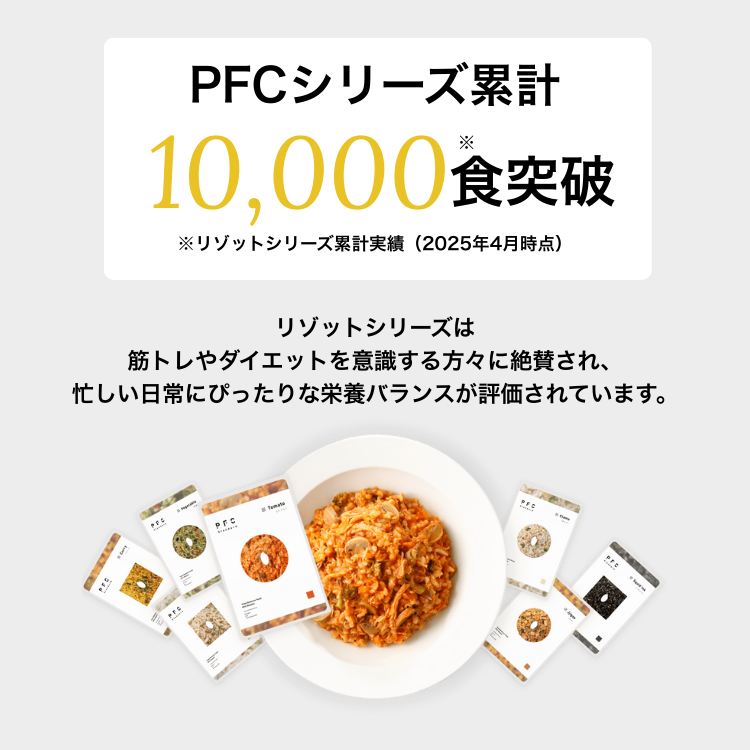 ご希望のセット数をお選びください \おすすめ/ お試し5食セット PFCリゾット 選べるお試し5食セット ¥5,500 今すぐ購入する 10食セット PFCリゾット 選べる10食セット ¥9,900 今すぐ購入する 20食セット PFCリゾット 選べる20食セット ¥18,600 今すぐ購入する \お好きなネットショップでもご購入できます!/